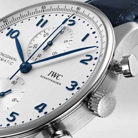 La Portugieser Chronographe est l'un des modèles les plus emblématiques de IWC Schaffhausen. Avec son diamètre compact de 41 millimètres, il s’ajuste à presque tous les poignets. Cependant, la lunette fine donne l'impression de porter une montre plus volumineuse. Le cadran clair et fonctionnel arbore des chiffres arabes appliqués et de fines aiguilles feuilles.