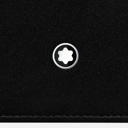 Portefeuille 4cc en cuir de veau pleine fleur européen noir, lustre Montblanc exceptionnel, doublure jacquard ornée du nom Montblanc, emblème Montblanc entouré d'un anneau palladié, avec 4 emplacements pour les cartes de crédit, compartiment pour les billets de banque, 4 poches supplémentaires