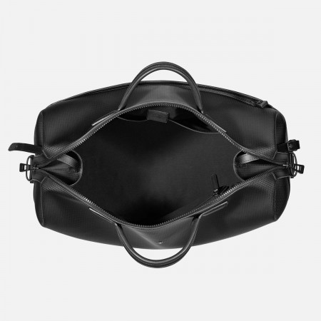 Avec sa couleur noire audacieuse, sa combinaison de cuir lisse et de cuir imprimé fibre de carbone et ses finitions en métal noir mat, ce sac polochon est l'accessoire parfait pour les jeunes explorateurs urbains qui vivent intensément leur quotidien, ainsi que pour les voyages et le week-end. Le sac polochon est doté d'1 compartiment principal et d'1 poche arrière zippée. Intérieur : 1 compartiment ouvert rembourré, 1 poche zippée, 2 poches ouvertes et 3 pattes pour des instruments d'écriture. Comprend également une bandoulière détachable et ajustable non logotée et un système pour attacher le sac à une valise.